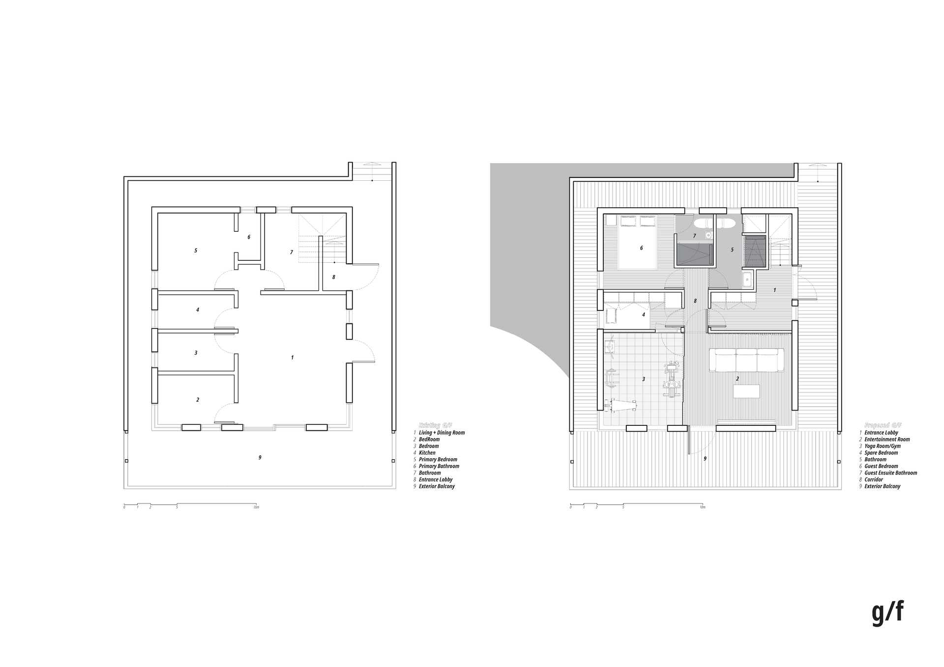 Layout - Originally split between two unrelated families, the three-storey village house was spatially divided, with separate entrances and little cohesion. The vision was clear: unify and open the structure, especially the upper floor, where kitchen, dining, and living converge into a single, luminous volume.